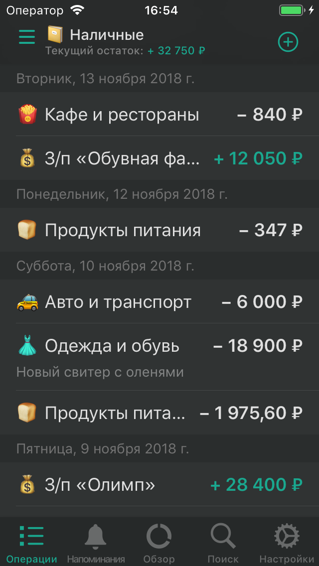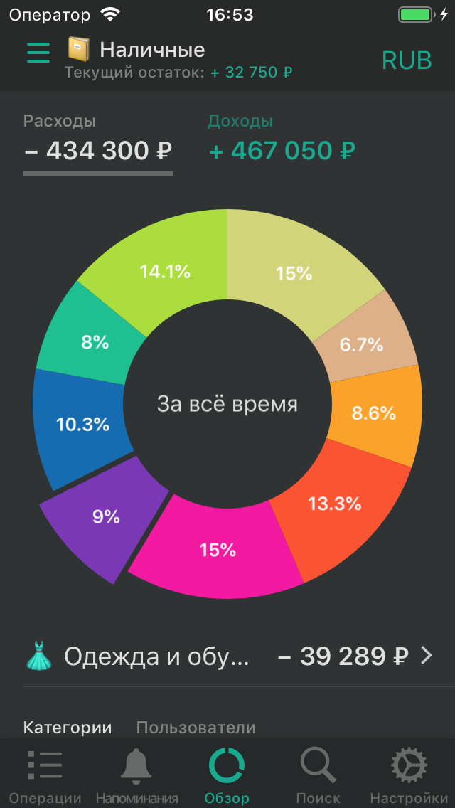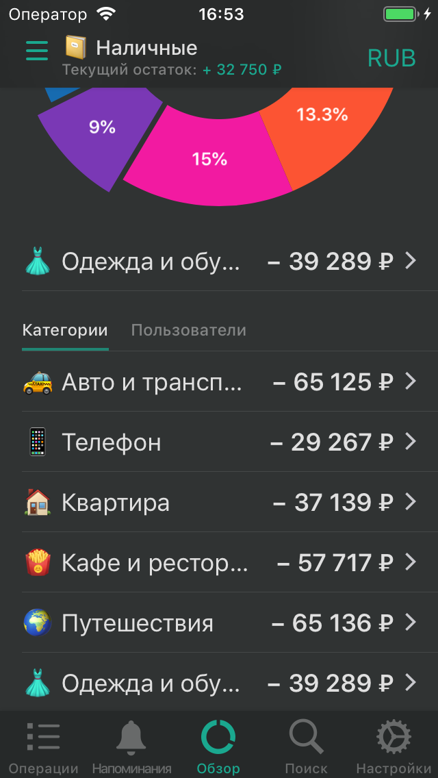 Настраиваемые счета и категории.