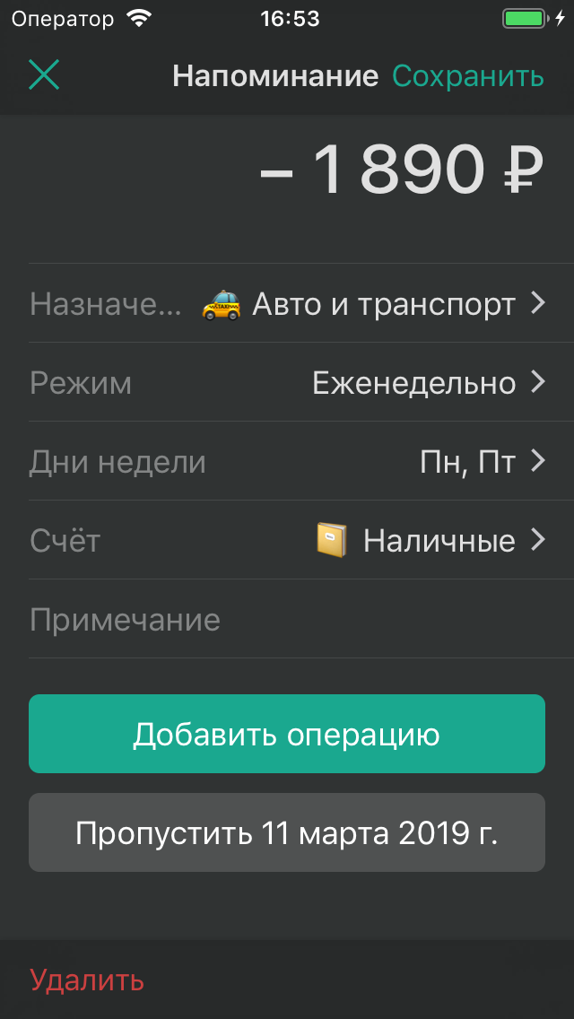 Система напоминаний, повторяющиеся операции.